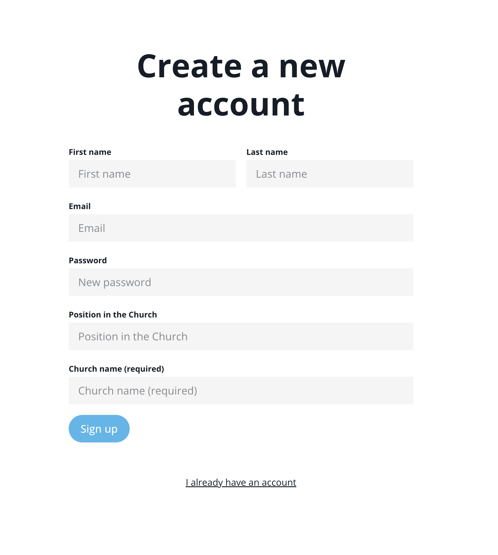 To create a new account click on the following link: https://churchaccounting.thinkific.com/users/sign_up