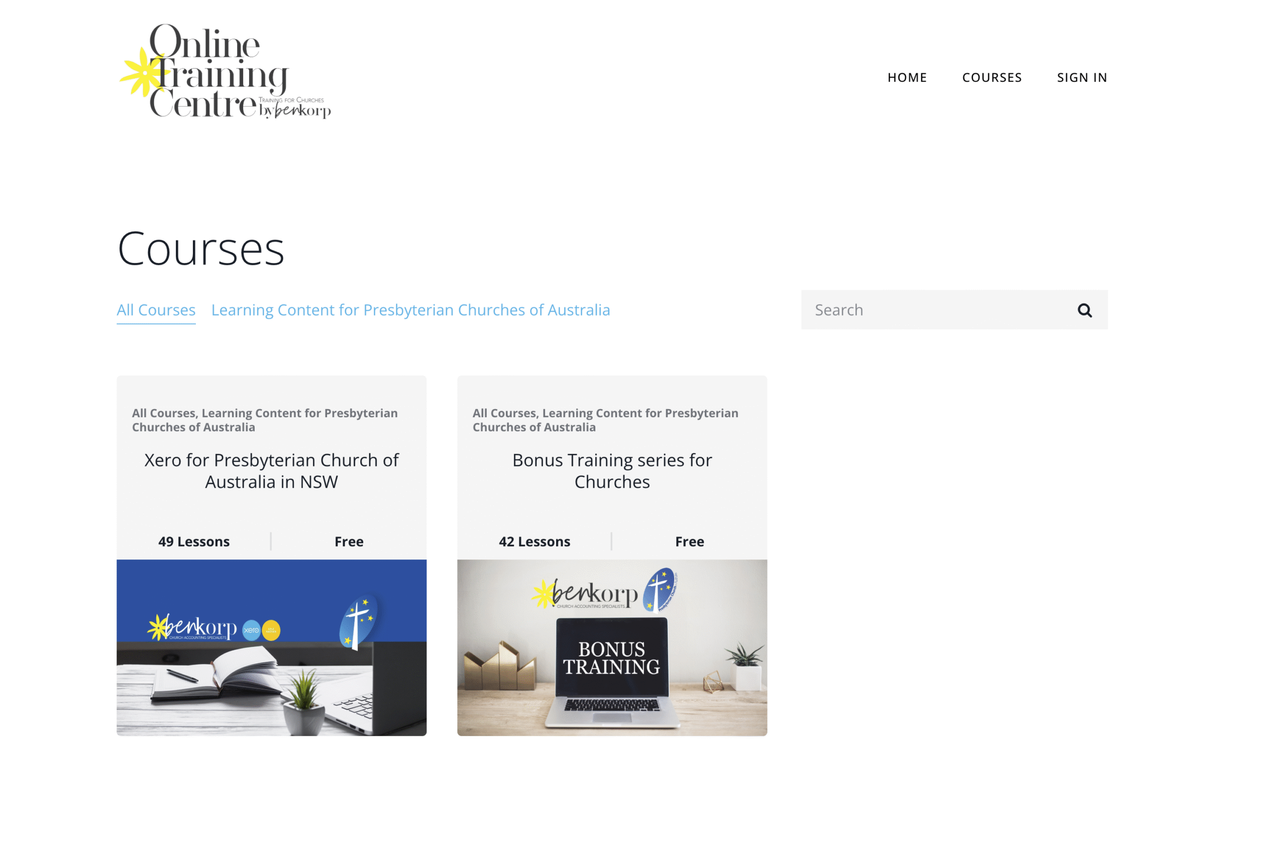 Once you have signed in, click on “Courses” and then seect Xero for Presbyterian Church of Australia in NSW Or the Bonus Course.